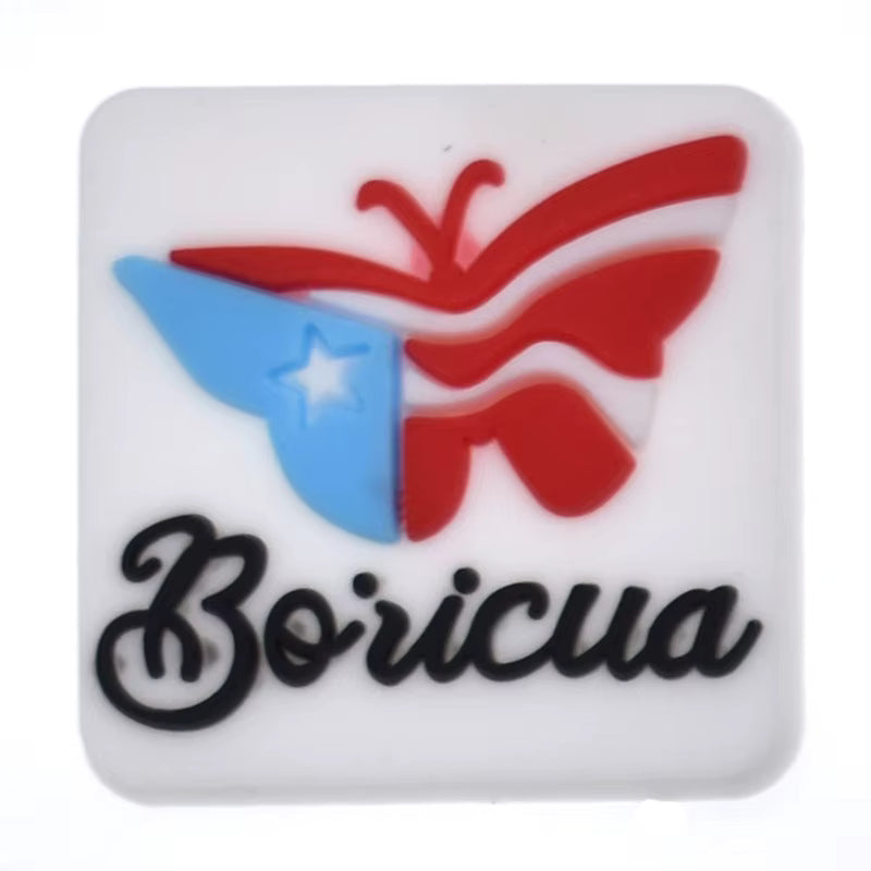 - Diseño: mariposa con los colores de la bandera de PR y la frase "Boricua"