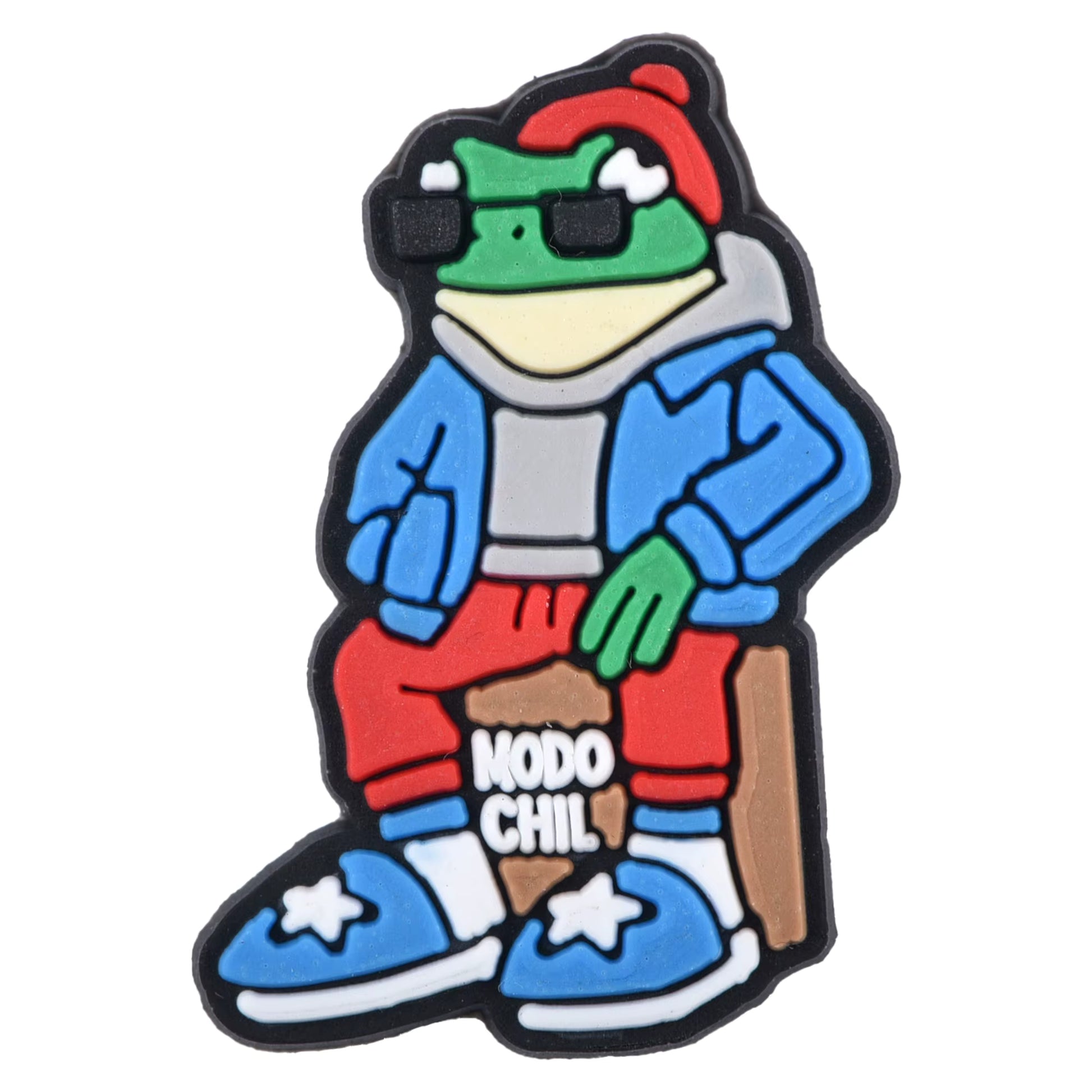 Concho está relajado, sentado “En Modo Chill”, transmitiendo buena vibra y tranquilidad boricua. Ideal para decorar tus Crocs o zapatos similares y añadir un toque fresco y auténtico a tu estilo.