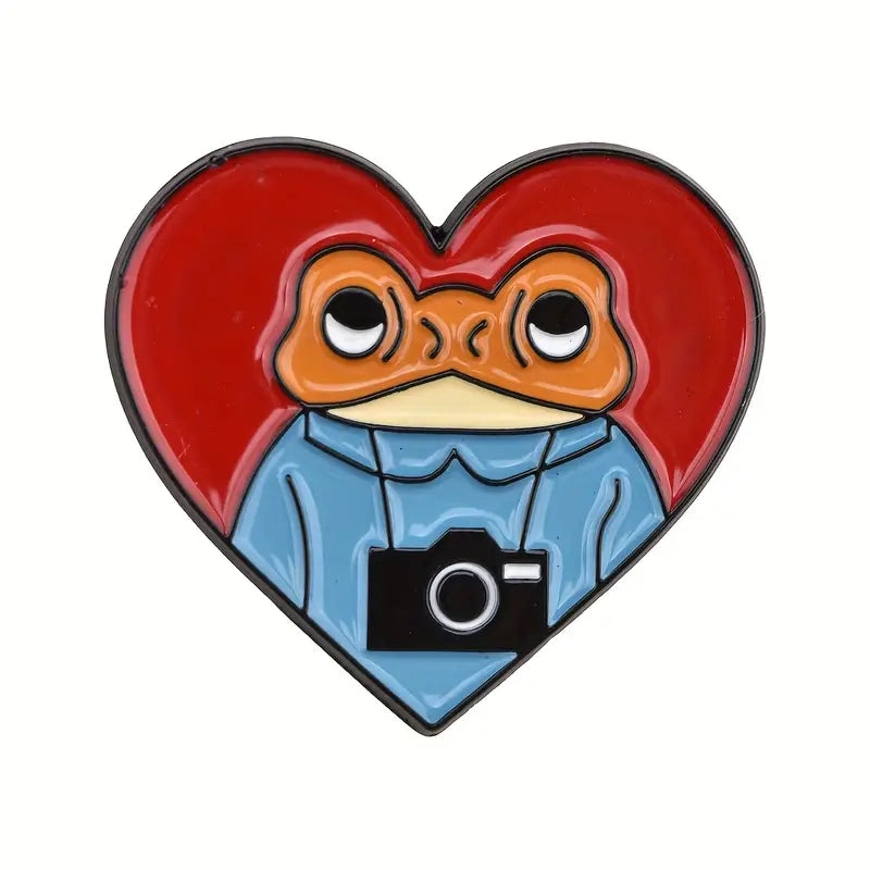 Este encantador pin metálico en forma de corazón rojo resalta con el personaje Concho, siempre listo con su cámara al cuello para capturar cada momento. Un accesorio lleno de humor, cultura boricua y cariño por la isla.