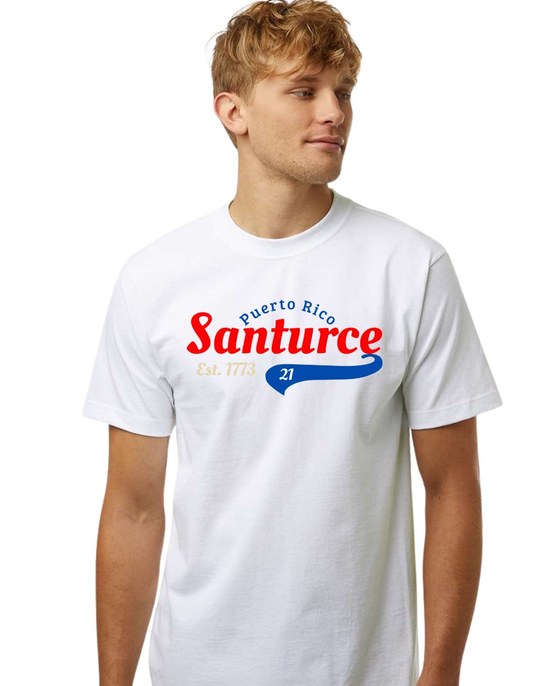 Con un diseño que fusiona el estilo deportivo clásico y el amor por la cultura boricua, en el frente lleva el nombre Santurce destacando con orgullo su origen, mientras que en la espalda se muestra “Clemente” junto al número 21, símbolo de legado, valentía y corazón.