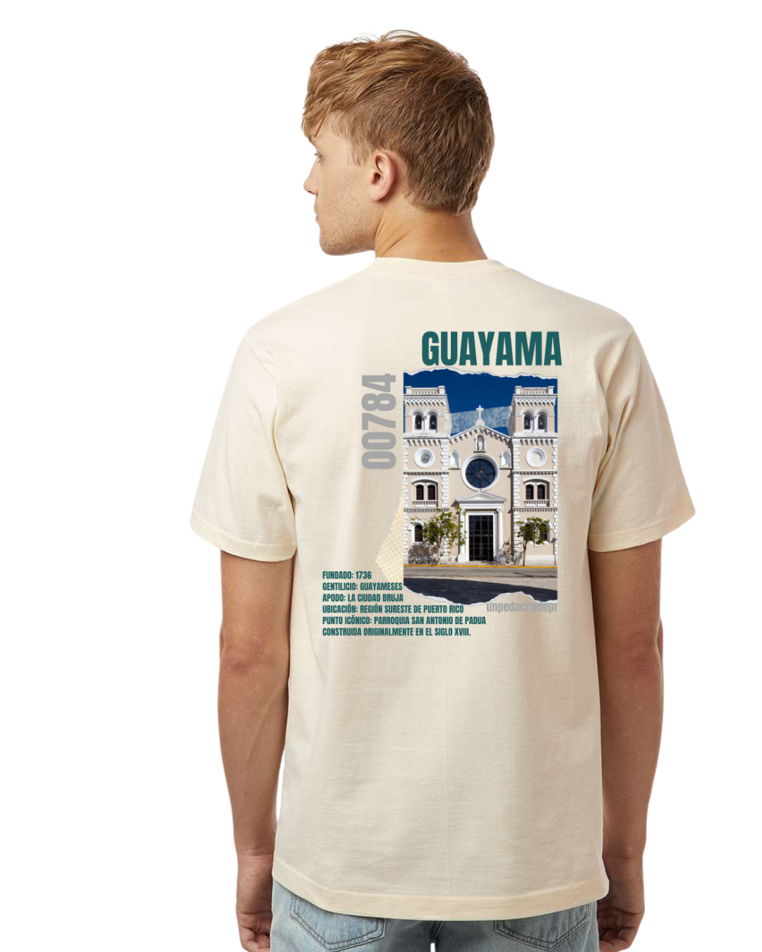 Celebra con orgullo tu conexión con Guayama, la emblemática “Ciudad Bruja”, con esta camiseta única. El diseño resalta uno de los íconos arquitectónicos más representativos del pueblo: la Parroquia San Antonio de Padua, una joya histórica construida originalmente en el siglo XVIII. Incluye además detalles que honran la historia y cultura guayamesa.
