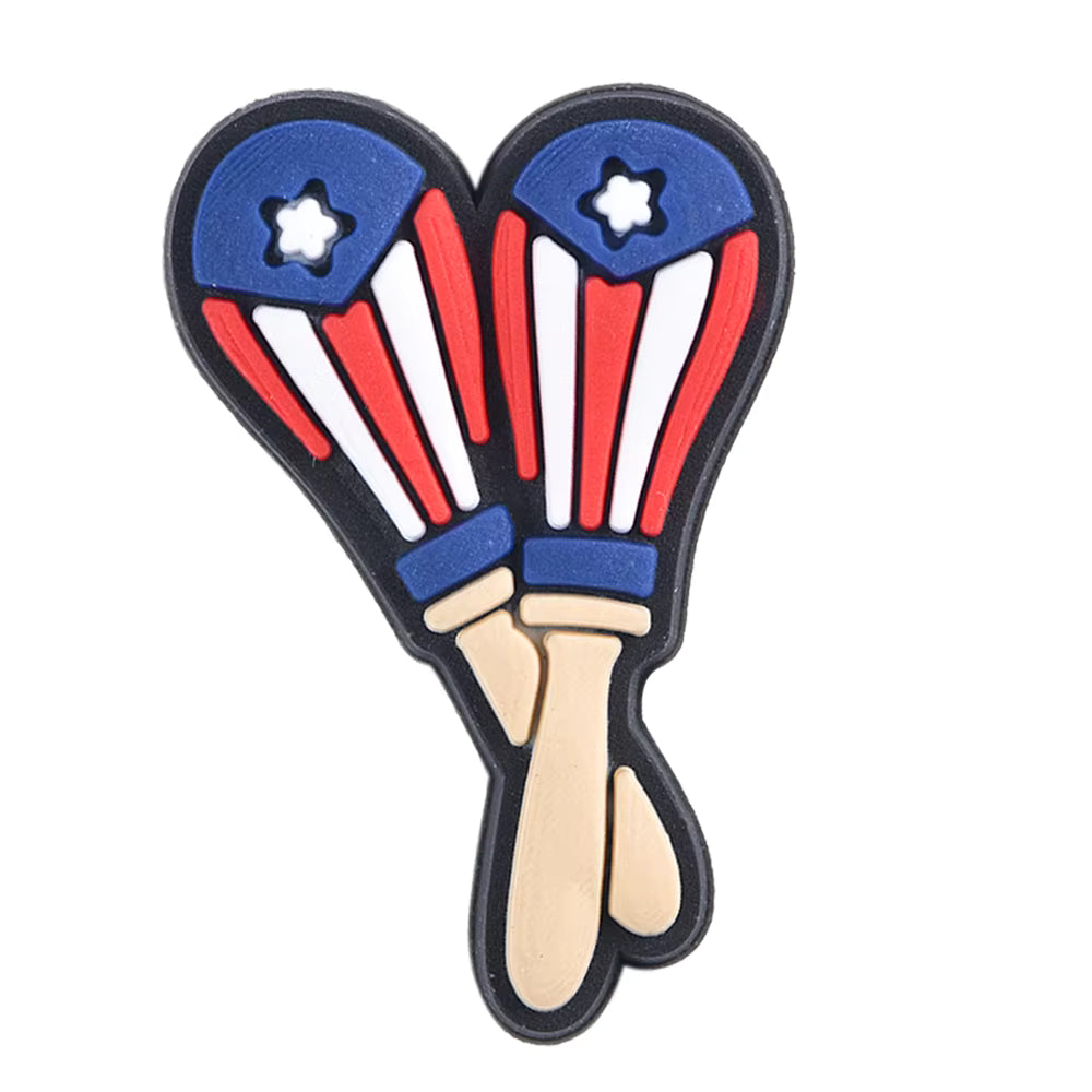 Estas maracas vibrantes llevan los colores de la bandera de Puerto Rico, representando ritmo, alegría y orgullo cultural. Ideal para decorar tus Crocs o zapatos similares con un toque musical y patriótico.
